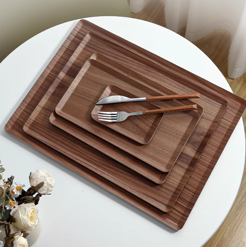 Modern tasarım dikdörtgen melamin servis tepsisi ışık lüks Horeca yemekleri çıkartması Lotus gül desen çay bardağı cilalı meyve