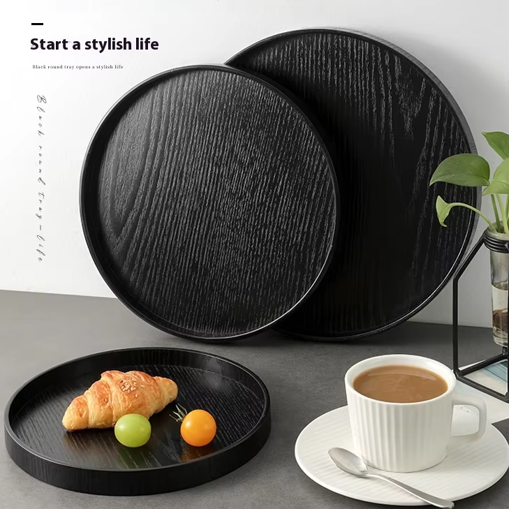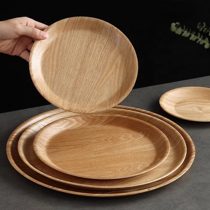 Customized LOGO Kitchen Accessories Solid Wood Tray for Tea Cup Fruit Bread Dim Sum Serving for Party Occasions Food Storage
